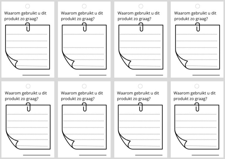 ! Het is belangrijk dat de klant die een aanbeveling doet haar naam noteert op het kaartje, anders verliest het zijn geloofwaardigheid.
